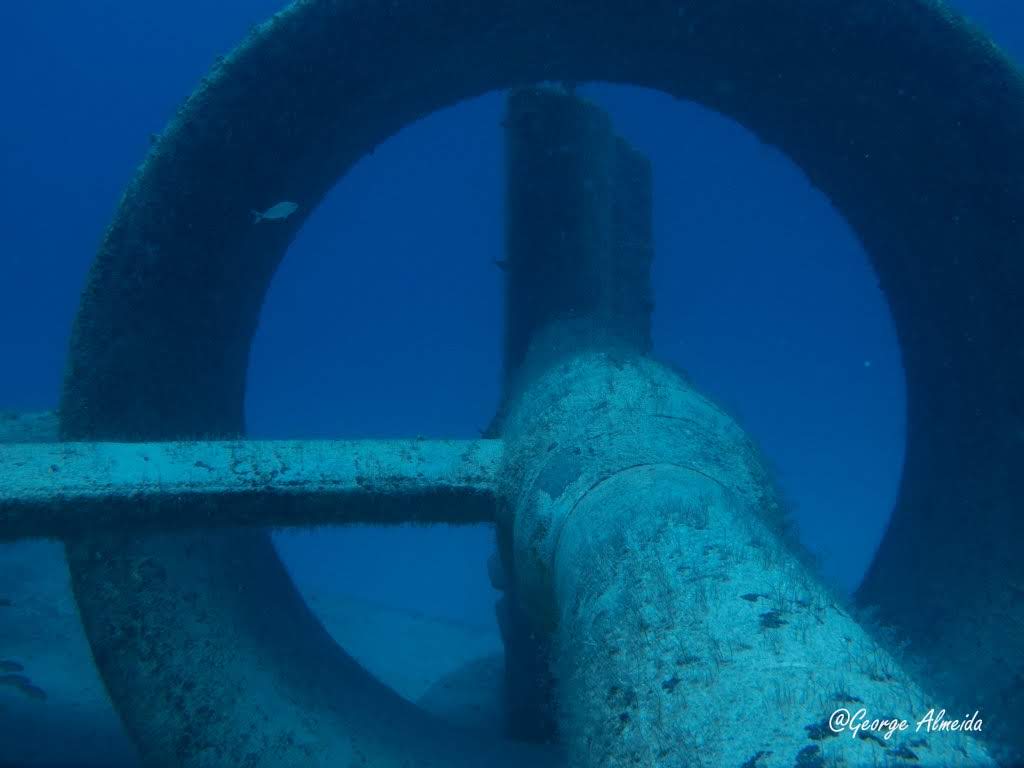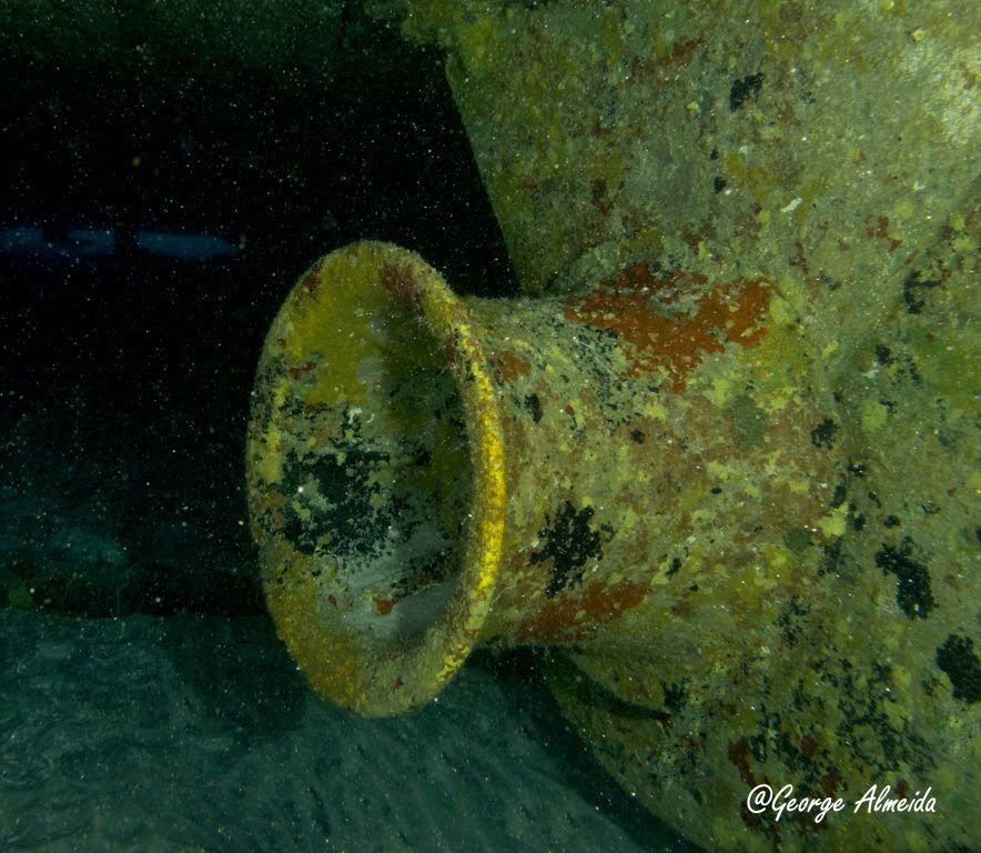 A âncora tipo patente, está dentro do escovém no boreste e no alto da proa fica a parte mais rasa do mergulho, próximo aos 15m onde há correntezas bem fortes.
