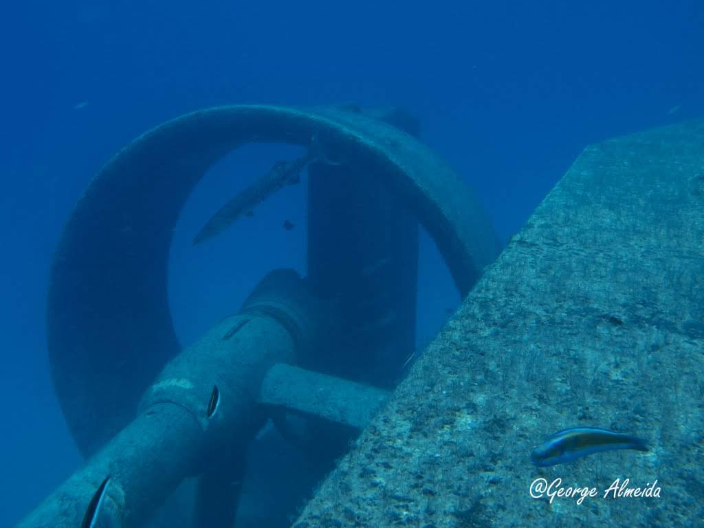 Realizamos dois mergulhos, explorando praticamente por duas horas o naufrágio Ramco Crusader. A parte mais rasa dele fica na proa entre 15 e 16m.