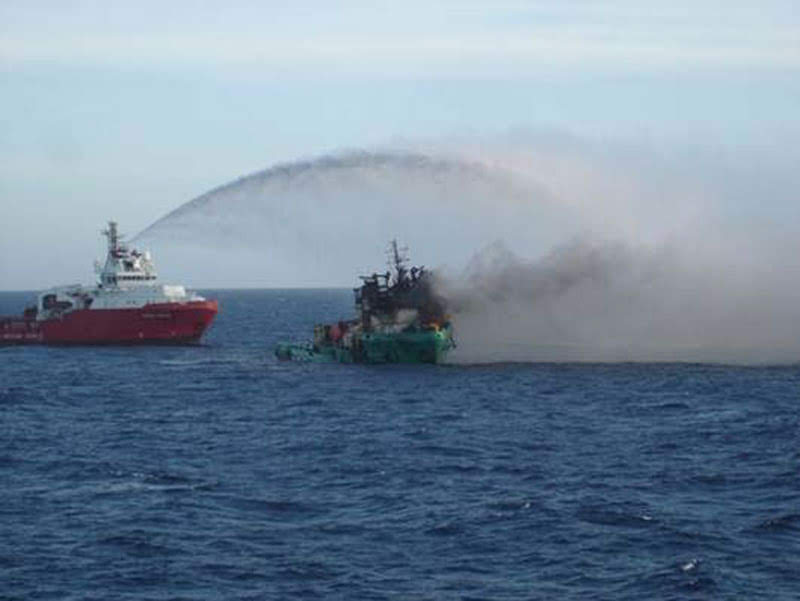 Estas embarcações prestavam apoio marítimo a outras plataformas na área. Às 03:40 horas foi efetuada a operação de resgate da tripulação e, posteriormente, às 04:00 horas, foi iniciado o combate ao incêndio pela embarcação “Skandy Admiral” com a utilização dos canhões d’água.