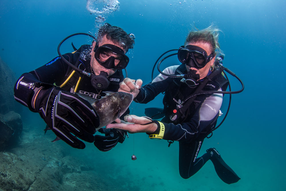 Algumas vezes acabamos observando pedras de chumbo de varas de pescar entre os rochedos, ou por exemplo, enormes pedaços de linha também de pesca, enroscadas em pedras ou corais, o que acaba facilitando que algum animal fique preso ou até mesmo, criando a oportunidade de enrosco de algum mergulhador desatento.