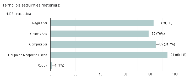 Podemos considerar como sendo alta a participação, pois 4.108 mergulhadores participaram da pesquisa, o que possibilita uma boa visão do atual mercado nacional.