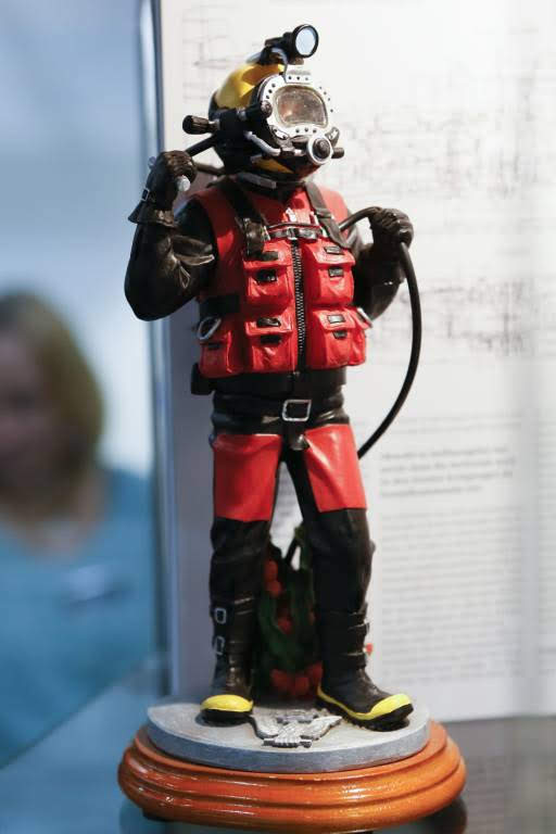 Um imenso tanque permitia que alguns mergulhadores exibissem os produtos embaixo d’água.