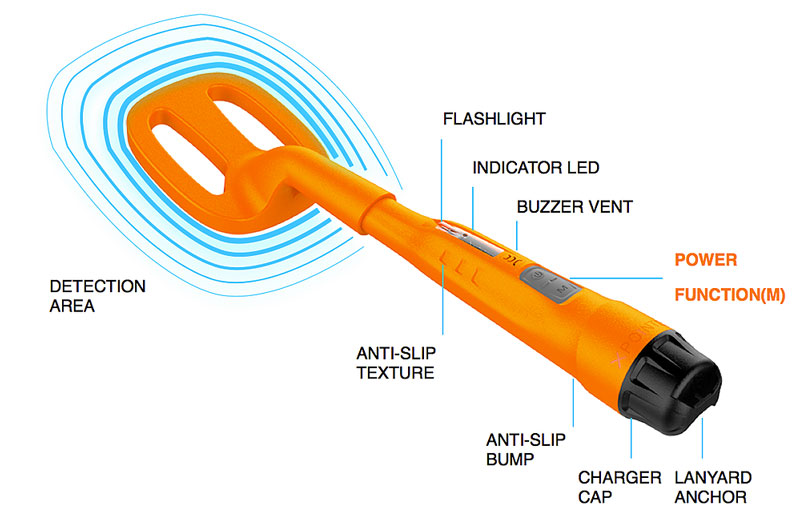 A parte da bobina, que é a responsável pela captação da variação magnética, ela possui 5×4 polegadas, e que percebendo qualquer variação magnética, faz com que um circuito eletrônico emita até 3 tipos diferentes de alertas: Luminoso, Sonoro ou Vibrante, que podem ser configurados de acordo com a preferência do mergulhador através de 2 botões no cabo do equipamento.