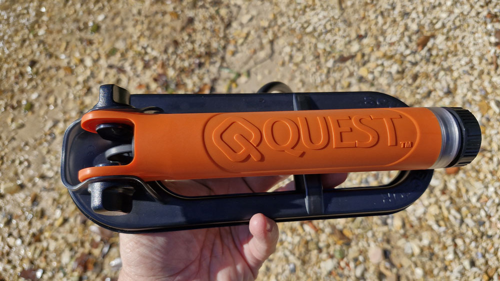 O Scuba Tector Pro é enviado com o detector, um par de o-rings extras, uma trava com argola em inox, cabo USB-C para recarregar a bateria, uma alça, bolsa para acomodação do produto, manual e adesivos da marca. Há também, o adaptador de vara, que permite conectar uma vara de extensão opcional (Rod Extension Kit), transformando-o em um detector de praia compacto. No meu caso, consegui utilizar facilmente em um bastão de pintura, desses comercializados em lojas de tintas, que por ser telescópico, facilita bem o transporte.