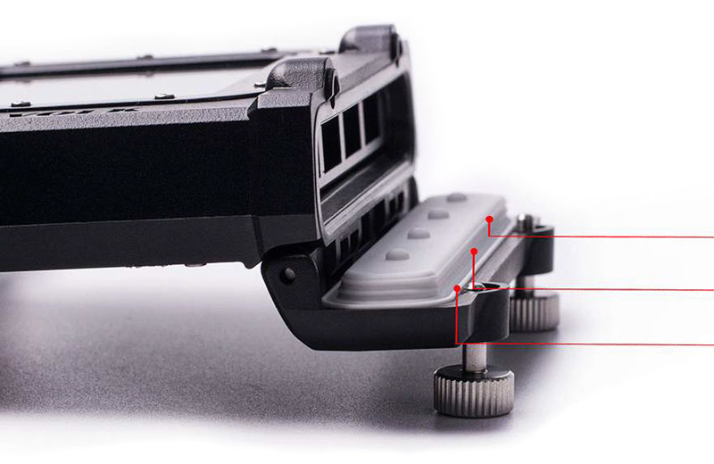Para a SeaTouch 3 Pro, foi desenvolvido um fechamento diferenciado, e ao invés de ser toda a tampa traseira, eles utilizam a tampa lateral, que possui um tamanho bem menor que as tradicionais caixas e utiliza um o-ring de tripla camada, que ao ser encaixado na sede, realiza o fechamento de uma forma bem mais inteligente em três camadas, pelo formato como foi desenvolvido.