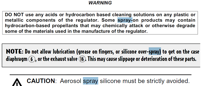 Se o procedimento seria correto ou não, e a origem disso tudo se deu porque alguns “profissionais” estão utilizando um spray de silicone na manutenção de reguladores de mergulho.