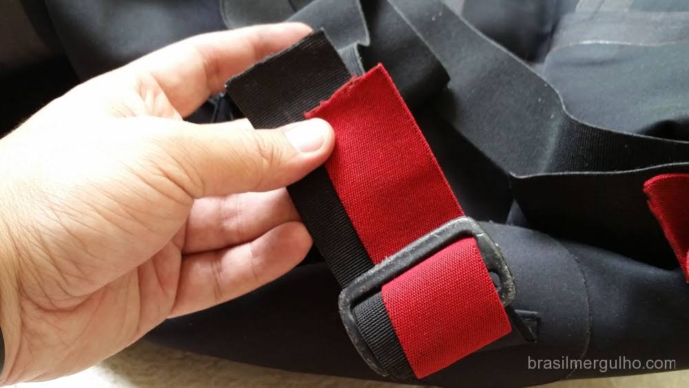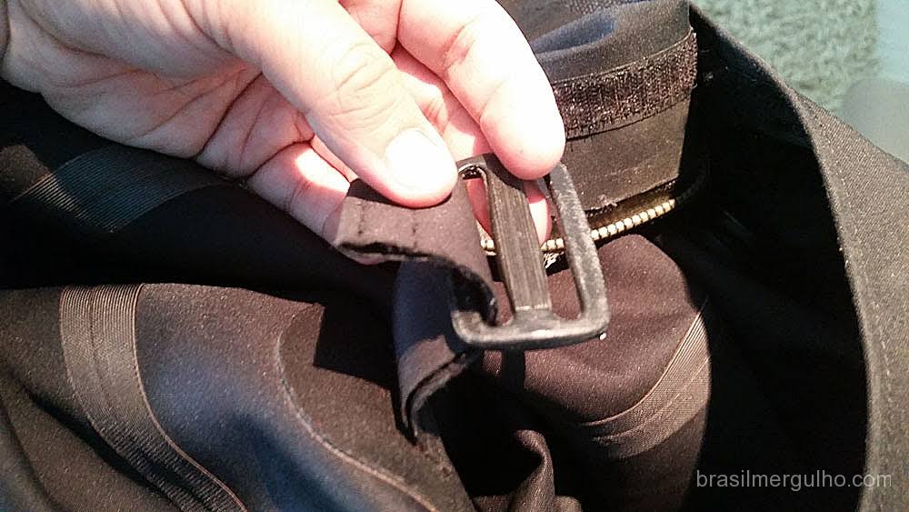 Toda roupa seca usada no mergulho possui um suspensório interno que tem como objetivo, permitir que o mergulhador remova a parte superior da roupa após o mergulho, deixando o mergulhador mais à vontade e sem arrastar os braços e selantes dos pulsos da roupa no chão.