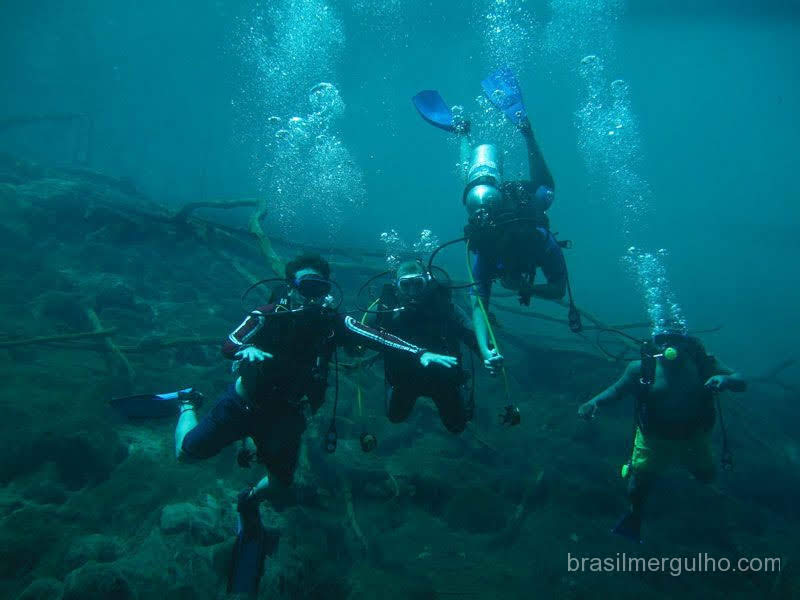 O mergulho é feito na lagoa conhecida como “Noronha mato-grossense”, ao lado de mais de 30 espécies de peixes em águas muito claras.