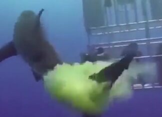 Mergulhadora dentro de um Tubarão-Tigre ?