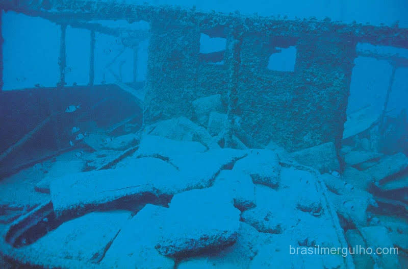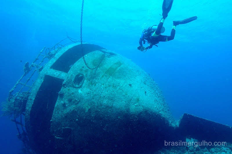 Na ponte de comando há uma área que não foi alagada, porque não houve pressão suficiente da água para tanto. Chegamos a este ponto e praticamente ficamos com meio corpo fora da água. O regulador não é retirado da boca porque o ar está velho e contaminado, mas é uma experiência ímpar.