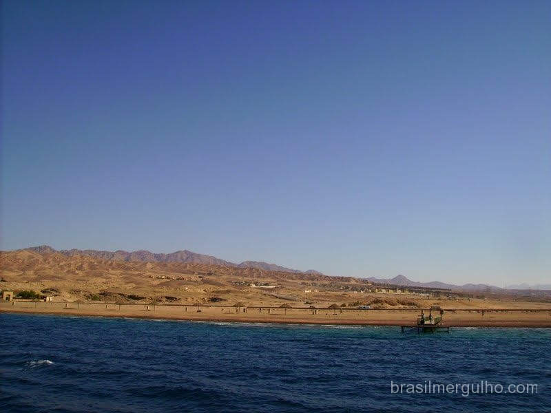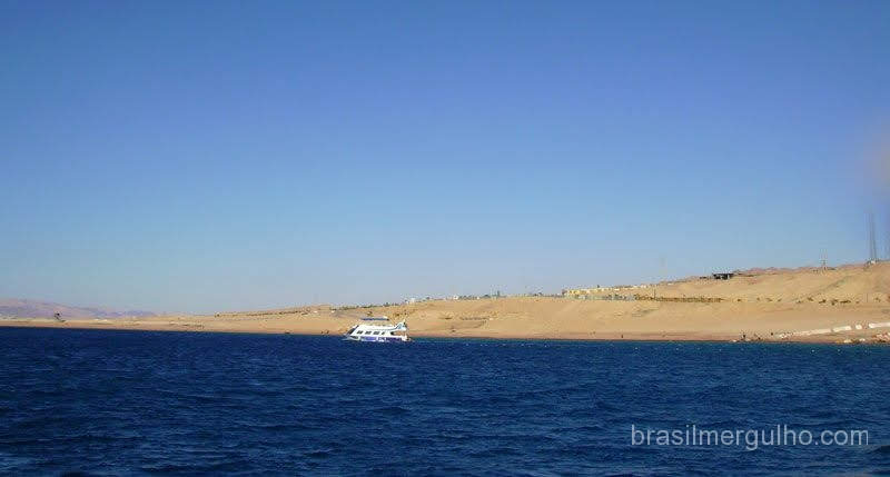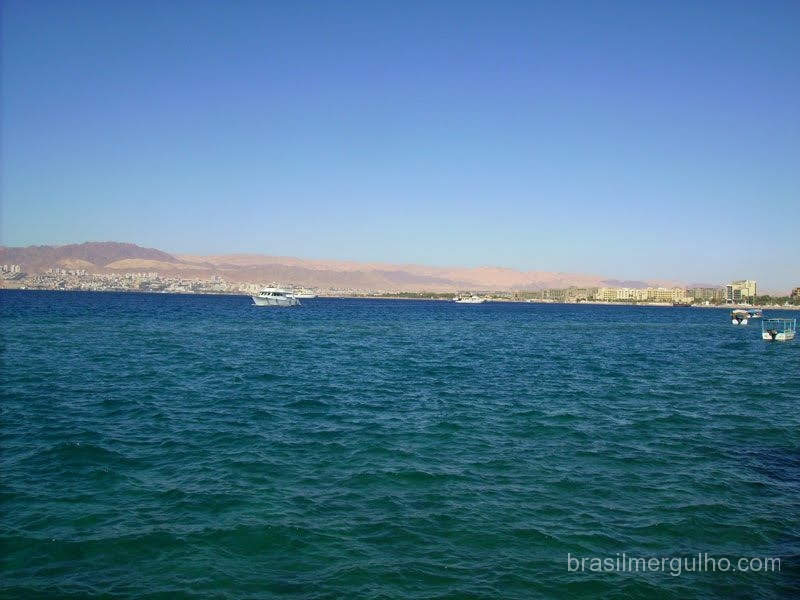 Esta região é circundada por altas montanhas, deserto e areia, comentei a geografia de nossa posição com um mergulhador israelense que estava no barco, disse a ele que estávamos em uma quádrupla fronteira, A frente o Egito, cujo território pode se avistar desde Aqaba, a esquerda a Arábia Saudita, e a direita Israel, então ele apontou uma alta montanha situada em território de Israel e disse: