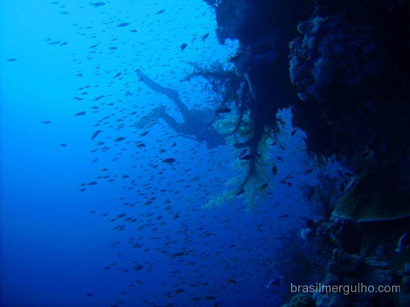 Apesar do local ser maravilhoso, não me lembro de ter avistado muita vida por lá, somente rochas. Assim mesmo, este local, mergulho eu recomendo.