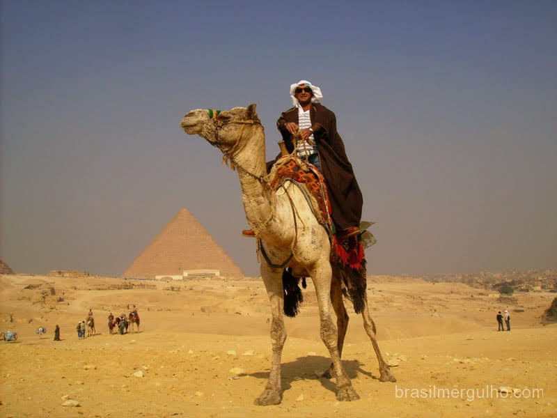 Seguimos para o hotel Sara Inn, bem no centro do Cairo, onde me instalei no quarto. Sem perder um minuto sequer, nos dirigimos à Gizah Valley no setor da cidade onde estão localizadas as pirâmides. Antes, passei por um estábulo para alugar um camelo, já ali bem perto.