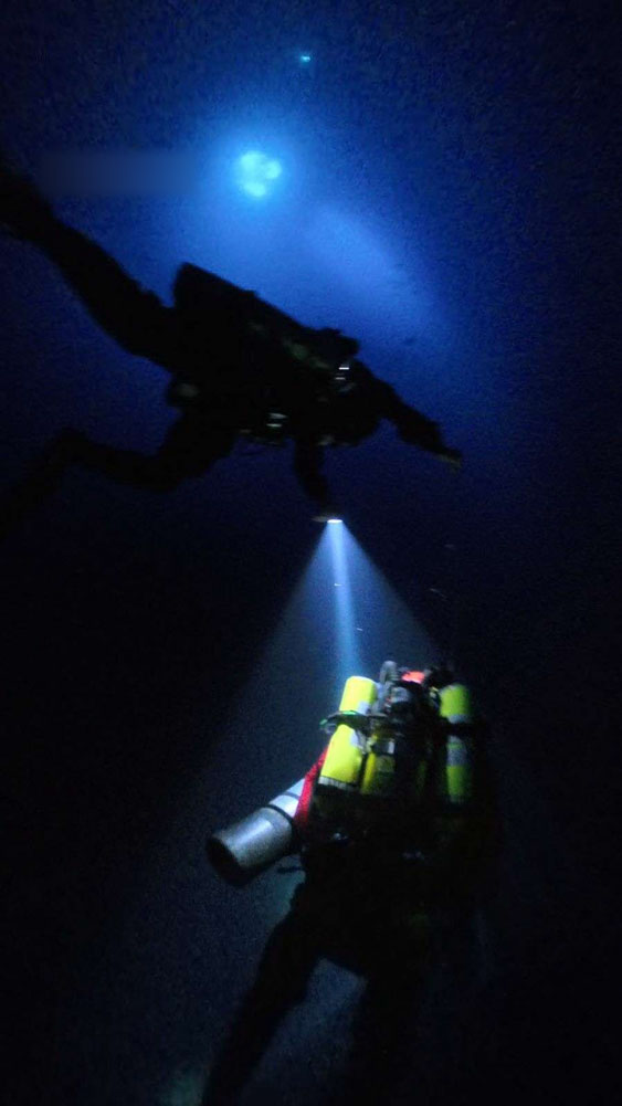 A equipe atingiu a marca de 80 metros de profundidade, com um avanço de 300 metros conduto a dentro, explorando uma região de visibilidade excepcional.