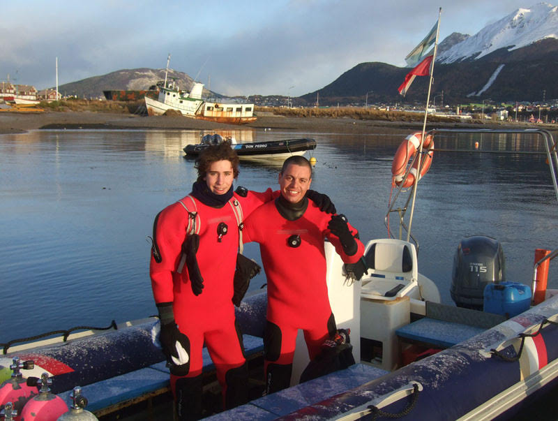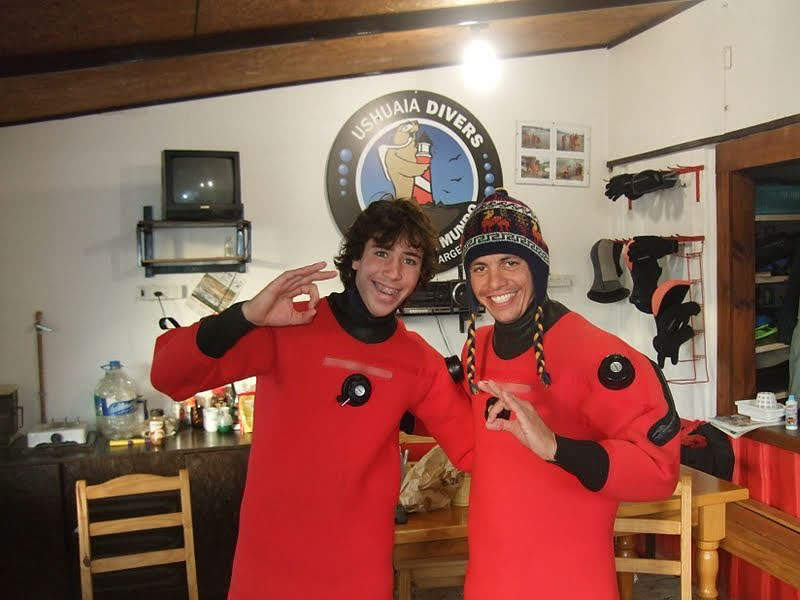Já no dia seguinte, nosso último dia inteiro em Ushuaia, acordamos com o tempo bastante favorável, não havendo nuvens, nem vento, nem neve, e fomos pela última vez até a operadora, preparados para o curso rápido de roupa seca e finalmente o mergulho.