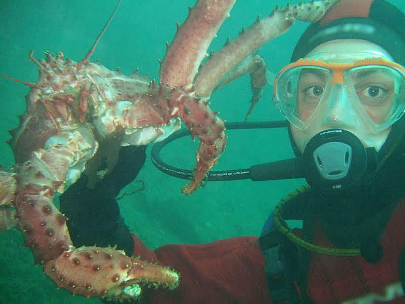 Existia pouca vida marinha naquele local, mas totalmente exótica aos nossos curiosos olhares. Víamos as famosas “centollas”, que são caranguejos gigantes e vermelhos, jardins de algas Kelps e nudibrânquios enormes. Dizem que com muita sorte, possível avistar até focas.