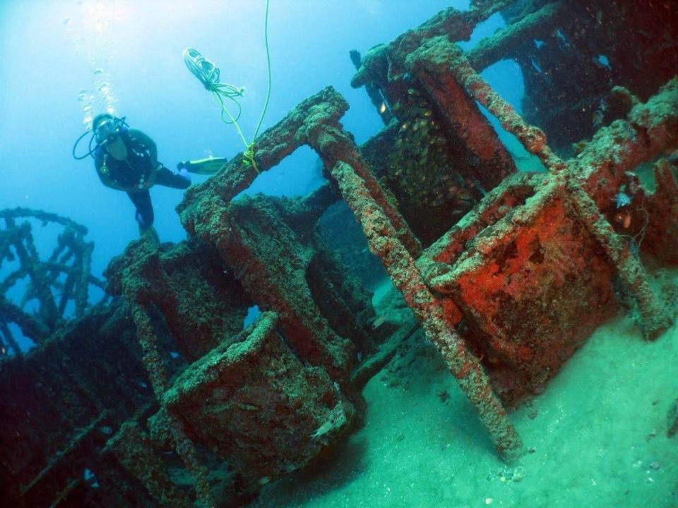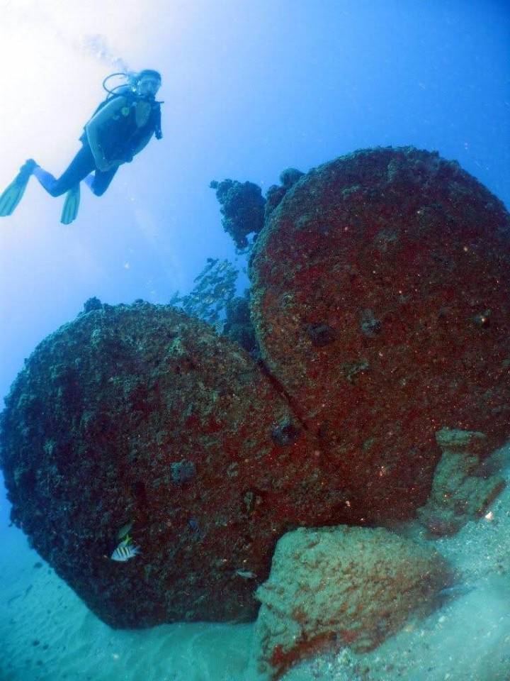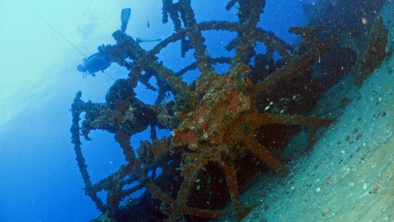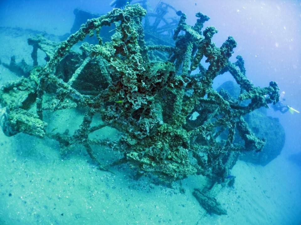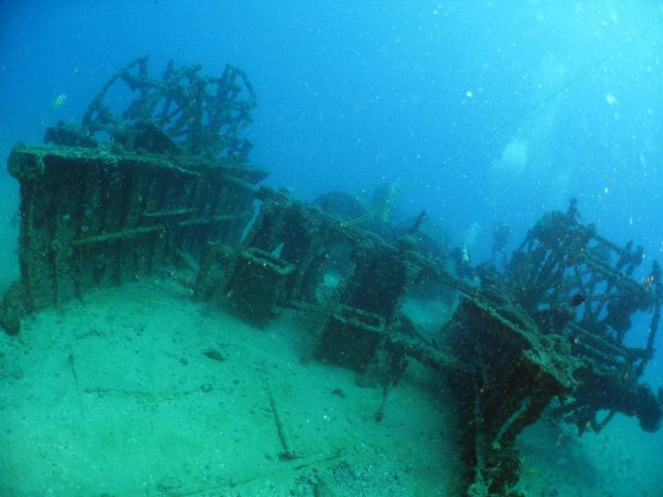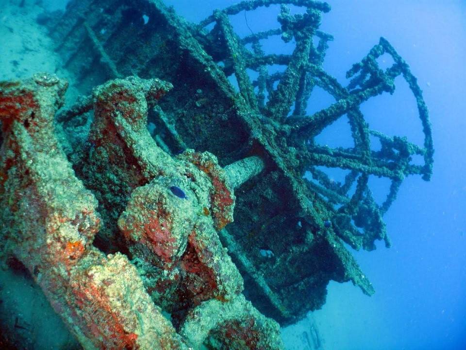 Suas caldeiras ainda estão inteiras assim como também as suas rodas propulsoras. Um pequeno, mas belo naufrágio.