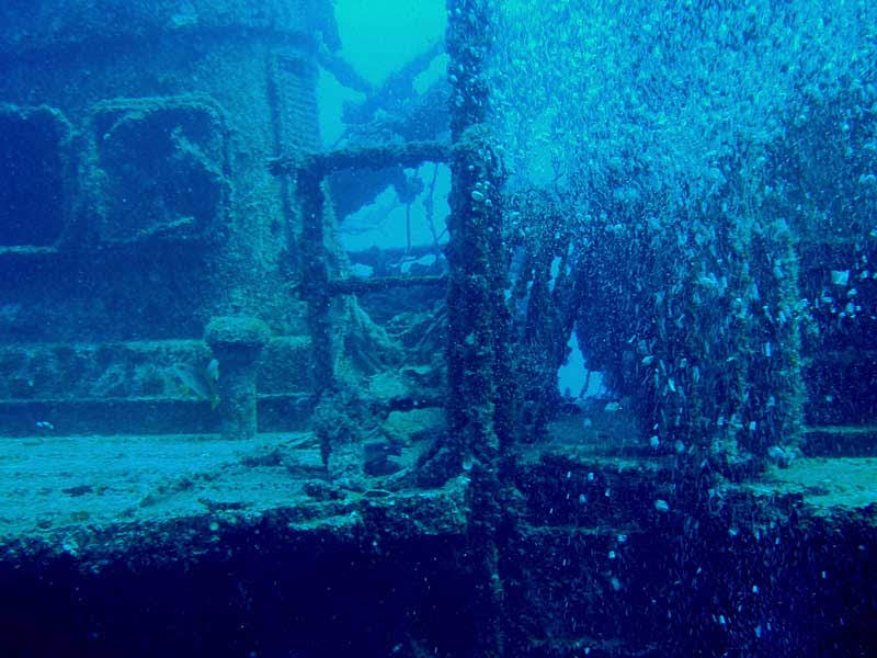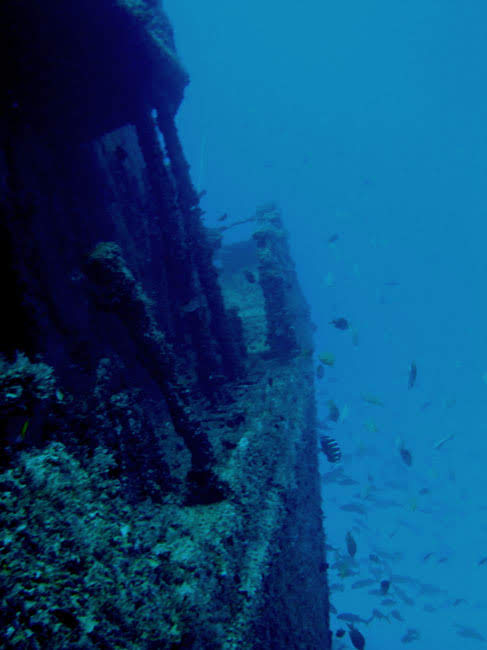 Grande naufrágio completamente desmantelado, estando aos 15m de profundidade.