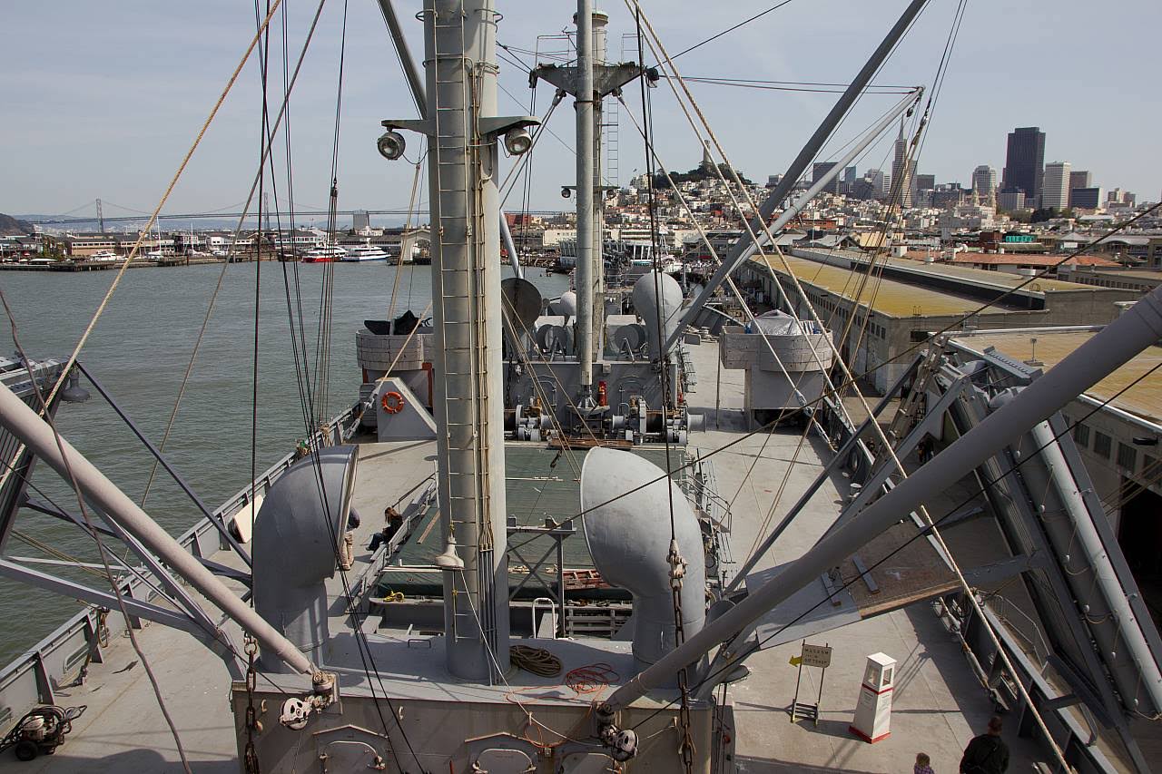 Curiosamente atrás dessa área, encontrei o Liberty Ship S. S. Jeremiah O’Brien, que hoje, é um museu flutuante e encontra-se aberto à visitação. Paga-se uma taxa de US$ 10 para entrar, quantia cobrada para a manutenção do navio museu.